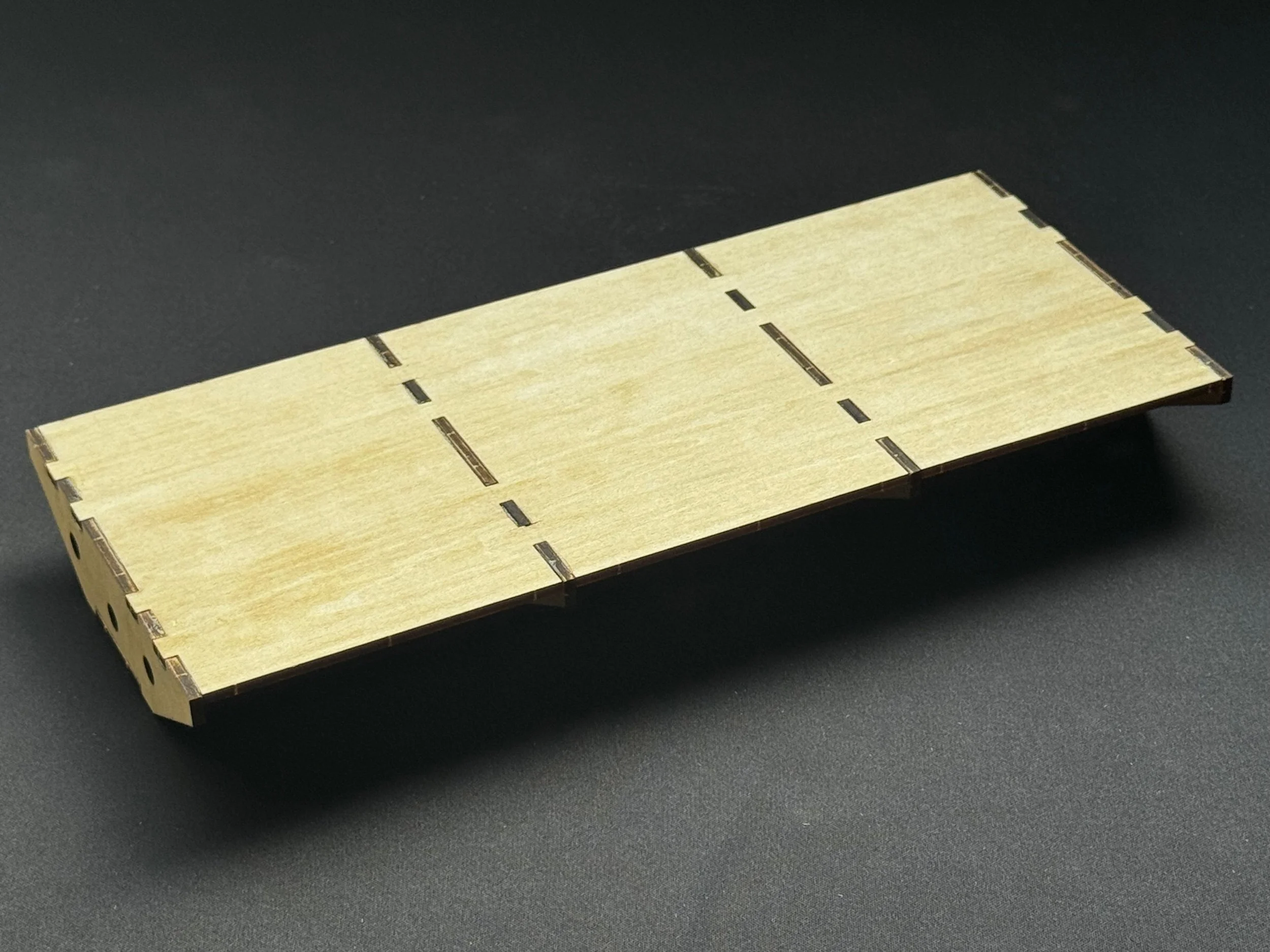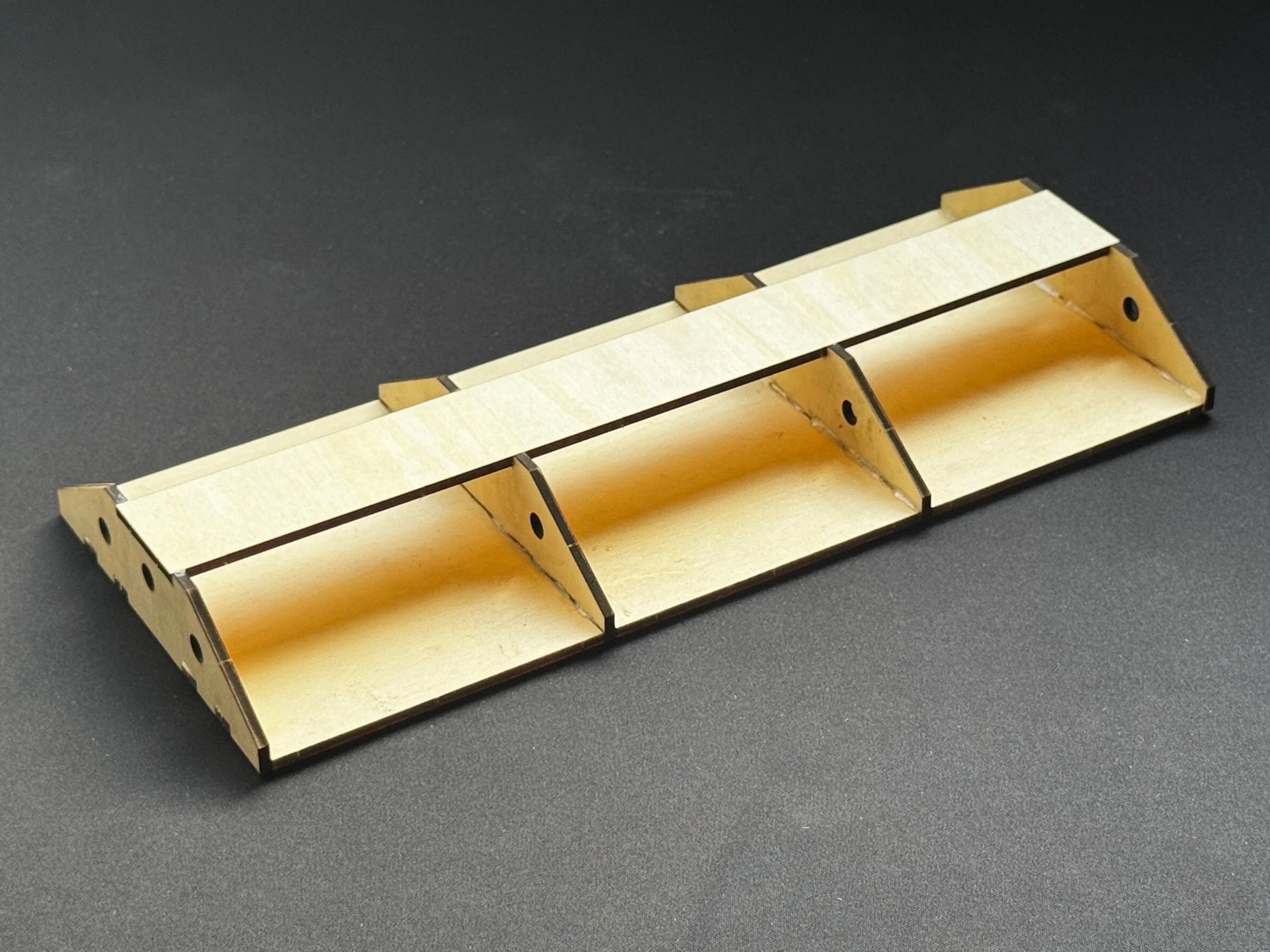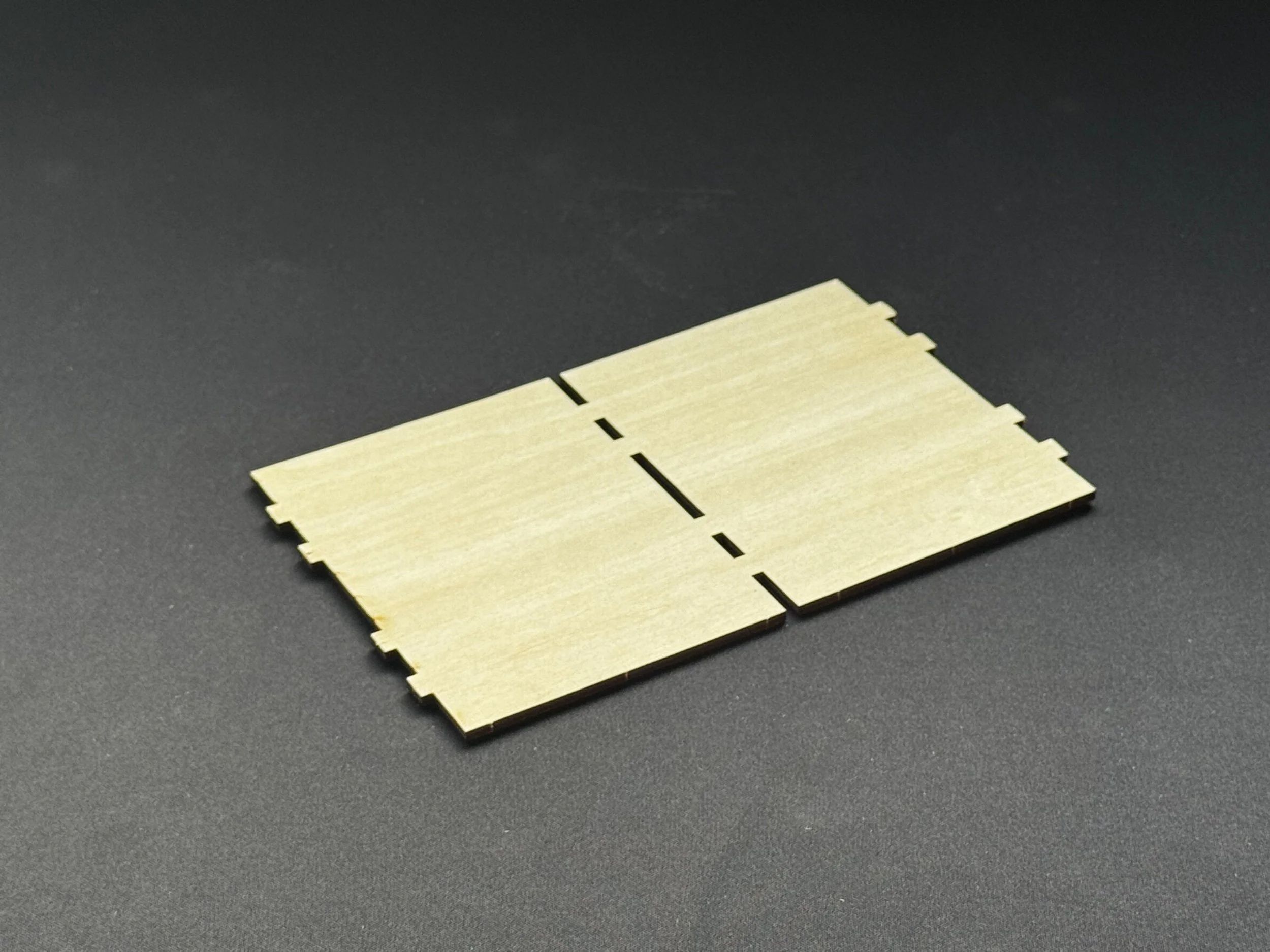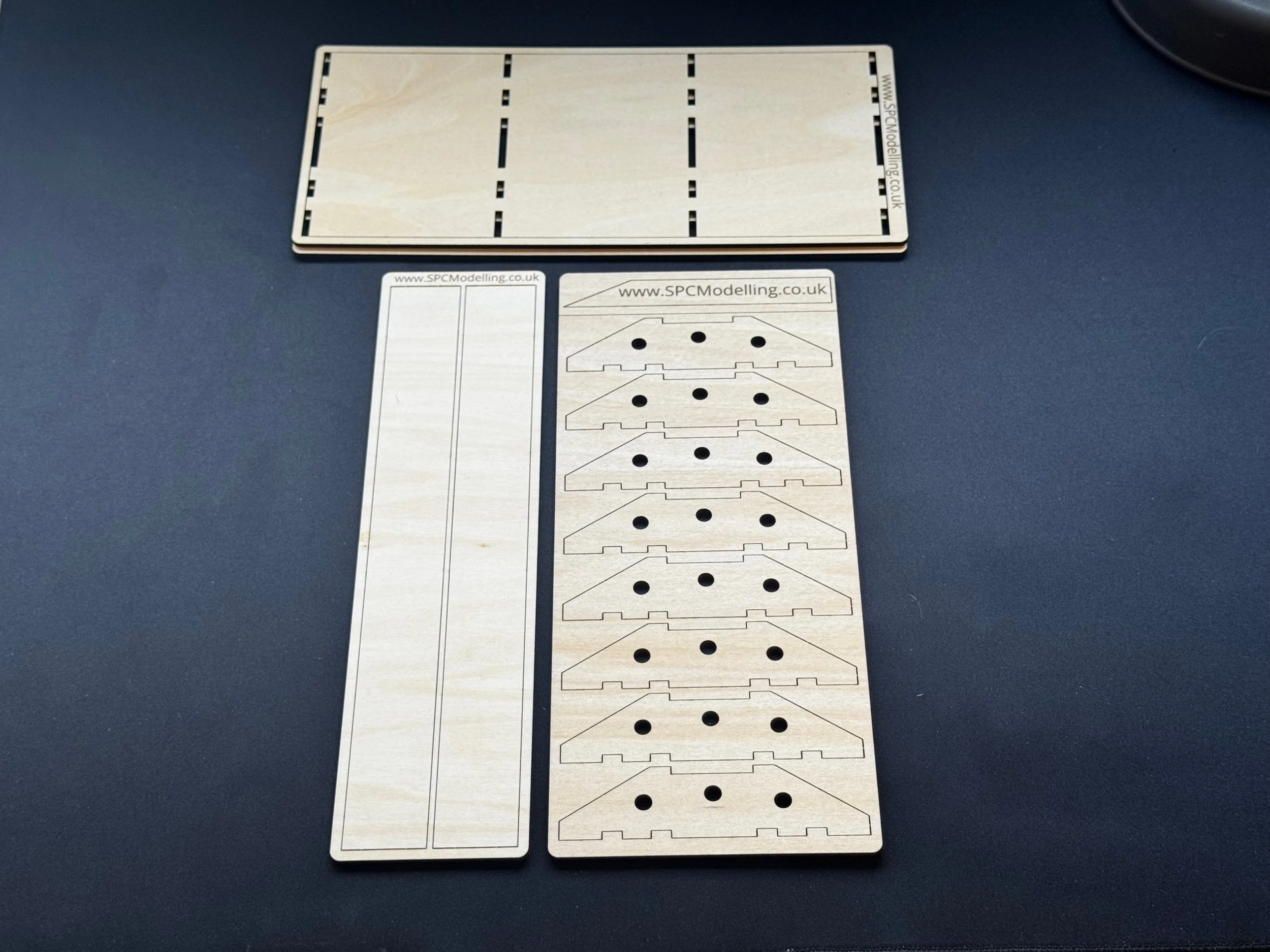 This laser cut kit comes with a glue spreader stick that also can be used as a 90 degree angle to make sure parts are glued together square and also sander stick, boards can be cut to size to fit various lengths.